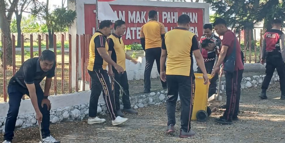 Bulukumba – Sinar mentari menyapu pelataran Taman Makam Pahlawan (TMP) Taccorong. Di tengah keheningan itu, puluhan personel Polres Bulukumba tampak bergerak penuh khidmat. Mereka memungut daun kering, membersihkan saluran air, hingga mengangkat tumpukan sampah. Setiap gerakan dilakukan dengan hati-hati, seolah tak ingin mengganggu tidur panjang para pahlawan bangsa, Jum’at 15/8/2025.