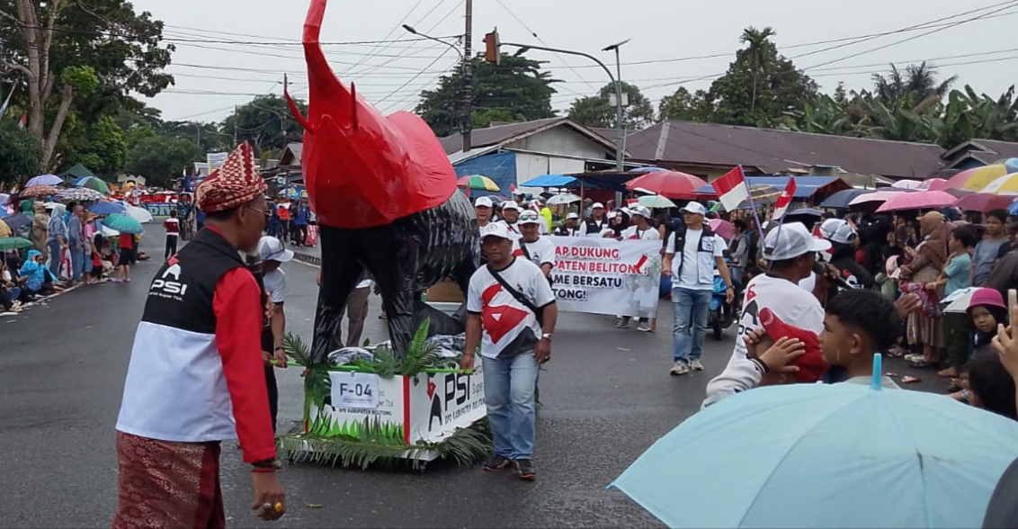 “Alhamdulillah, ini bentuk partisipasi kita memeriahkan pawai dalam rangka HUT RI ke-80. Yang paling utama itu semangat kebersamaan kita dengan seluruh elemen masyarakat Belitung khususnya,” ungkap Ketua DPD PSI Belitung Wyllianto SE.( Yudi/irfan ).
