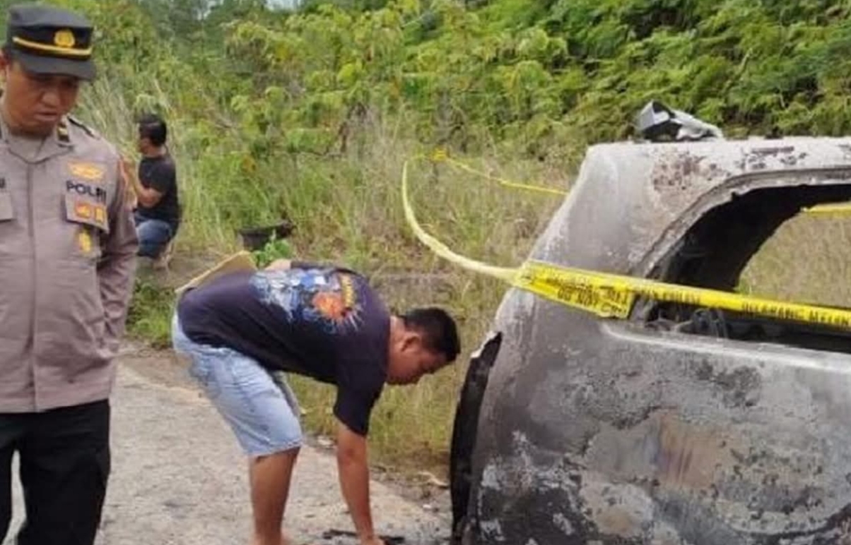 Tak berhenti di situ. Dalam kondisi emosi memuncak, para pelaku kemudian menyiram mobil Inova milik Su dengan bensin lalu membakarnya hingga nyaris rata dengan tanah.