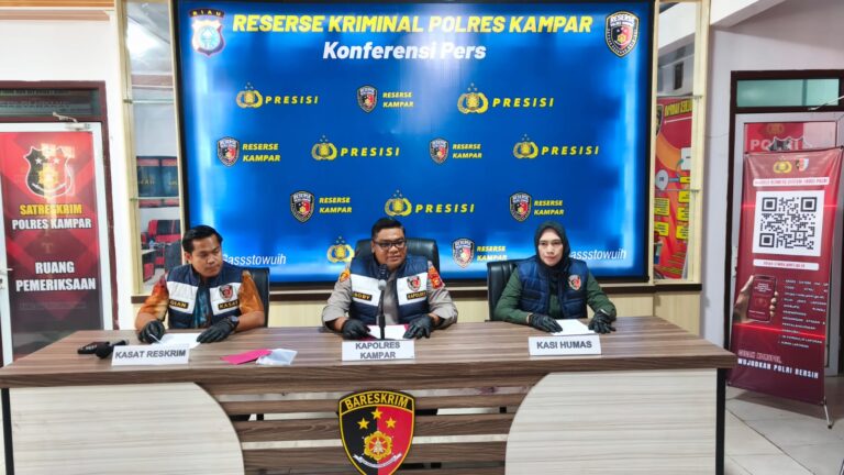 Kapolres Kampar AKBP Boby Putra Ramadhan, didampingi Kasat Reskrim AKP Gian Wiatma Jonimandala dan Kasi Humas IPTU Rekmusnita, menyampaikan apresiasi atas gerak cepat tim Satreskrim dalam mengungkap kasus tersebut.“Saya sangat mengapresiasi kerja keras Satreskrim Polres Kampar yang berhasil mengungkap kasus pembunuhan ini secara cepat dan tepat,” ujar Kapolres saat konferensi pers di Mapolres Kampar.