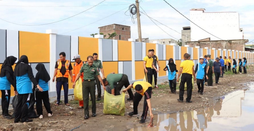 Kerja bakti difokuskan pada pembersihan area pasar dan lingkungan sekitarnya, dengan mengumpulkan sampah, membersihkan saluran air, serta menata area yang dinilai rawan kotor dan kumuh.
