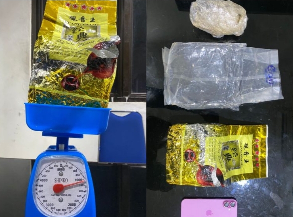 Sabu tersebut ditemukan di dalam kontrakan pelaku berinisial RPS alias Ria (28), warga Pangkalpinang. Saat penggeledahan yang disaksikan Ketua RT setempat, petugas mendapati satu paket besar sabu dalam plastik kuning emas bertuliskan “Guanyinwang” yang disembunyikan di bawah meja.