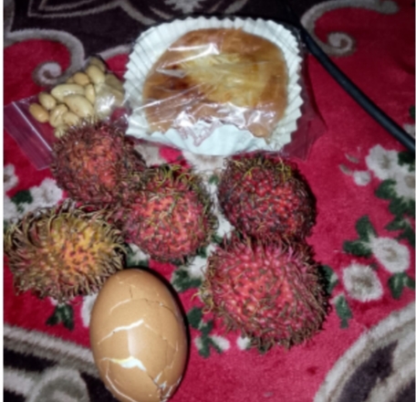 “Telur, roti, kacang goreng, rambutan tiga biji. Itu terus hampir setiap hari. Anak saya sudah bosan,” ujarnya.
